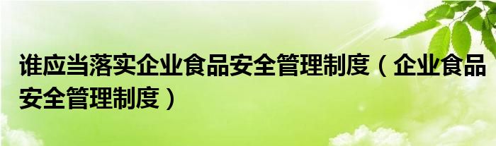 关于谁应当落实企业食品安全管理制度,企业食品安全管理制度这个很多人还不知道,今天菲菲来为大家解答以上的问题,现在让我们一起来看看吧!