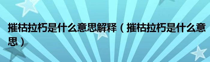 关于摧枯拉朽是什么意思解释,摧枯拉朽是什么意思这个很多人还不知道,今天菲菲来为大家解答以上的问题,现在让我们一起来看看吧!