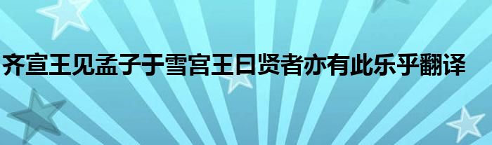 关于齐宣王见孟子于雪宫王曰贤者亦有此乐乎翻译这个很多人还不知道,今天菲菲来为大家解答以上的问题,现在让我们一起来看看吧!