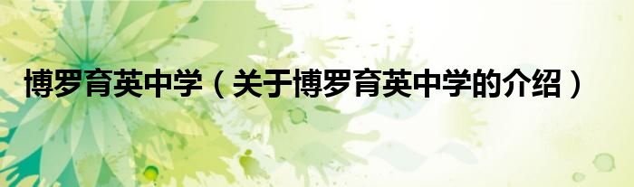 博罗育英中学(关于博罗育英中学的介绍)