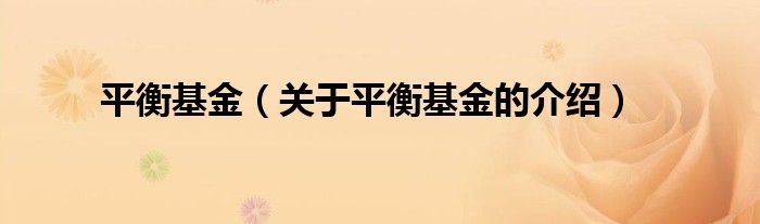 大家好,今天小乐来为大家解答以上的问题。平衡基金,关于平衡基金的介绍很多人还不知道,现在让我们一起来看看吧!