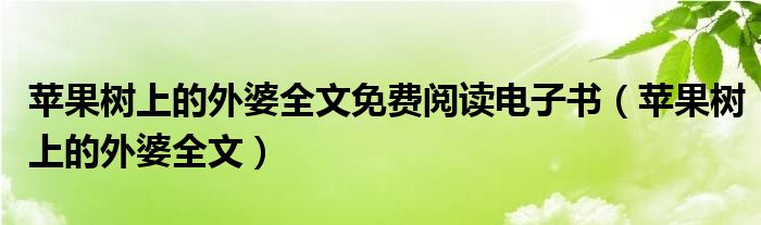 关于苹果树上的外婆全文免费阅读电子书,苹果树上的外婆全文这个很多人还不知道,今天菲菲来为大家解答以上的问题,现在让我们一起来看看吧!