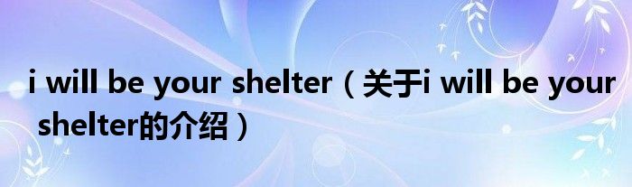 i will be your shelter(关于i will be your shelter的介绍)
