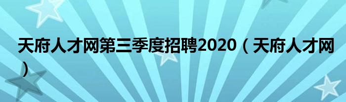 关于天府人才网第三季度招聘2020,天府人才网这个很多人还不知道,今天菲菲来为大家解答以上的问题,现在让我们一起来看看吧!