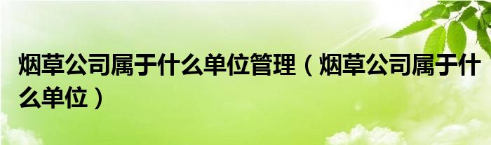 关于烟草公司属于什么单位管理,烟草公司属于什么单位这个很多人还不知道,今天菲菲来为大家解答以上的问题,现在让我们一起来看看吧!