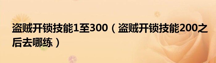 盗贼开锁技能1至300(盗贼开锁技能200之后去哪练)