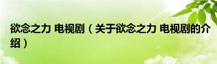 欲念之力 电视剧(关于欲念之力 电视剧的介绍)