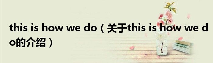 大家好,今天小乐来为大家解答以上的问题。this is how we do,关于this is how we do的介绍很多人还不知道,现在让我们一起来看看吧!