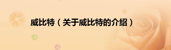大家好,今天小乐来为大家解答以上的问题。威比特,关于威比特的介绍很多人还不知道,现在让我们一起来看看吧!