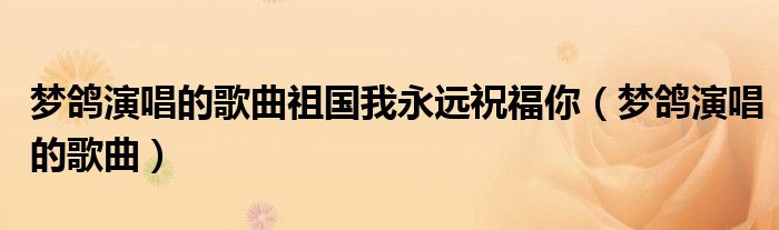 关于梦鸽演唱的歌曲祖国我永远祝福你,梦鸽演唱的歌曲这个很多人还不知道,今天菲菲来为大家解答以上的问题,现在让我们一起来看看吧!