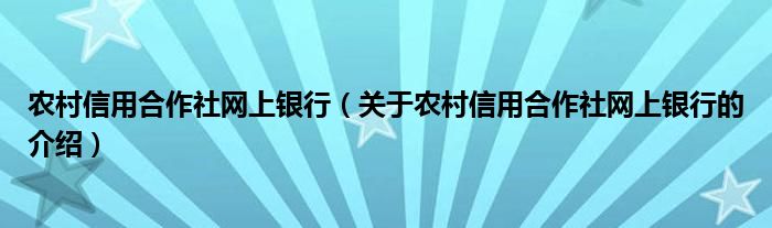 1、农村信用社网上银行,农村信用社属于农村合作金融机构,其主要职能是筹集农村闲散资金,为农业、农民、农村的经济发展提供金融服务。