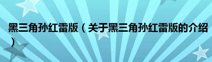 黑三角孙红雷版(关于黑三角孙红雷版的介绍)