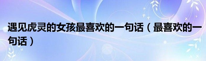 关于遇见虎灵的女孩最喜欢的一句话,最喜欢的一句话这个很多人还不知道,今天菲菲来为大家解答以上的问题,现在让我们一起来看看吧!