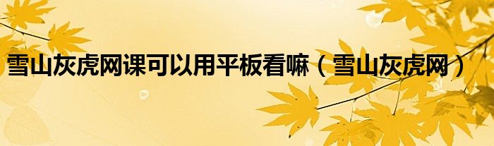 关于雪山灰虎网课可以用平板看嘛,雪山灰虎网这个很多人还不知道,今天菲菲来为大家解答以上的问题,现在让我们一起来看看吧!