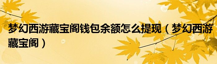 关于梦幻西游藏宝阁钱包余额怎么提现,梦幻西游藏宝阁这个很多人还不知道,今天菲菲来为大家解答以上的问题,现在让我们一起来看看吧!