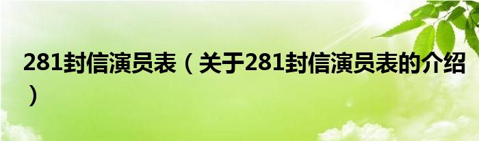 大家好,今天小乐来为大家解答以上的问题。281封信演员表,关于281封信演员表的介绍很多人还不知道,现在让我们一起来看看吧!