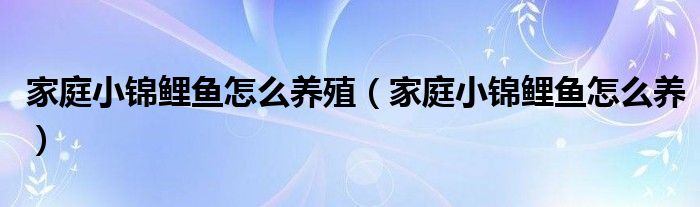 关于家庭小锦鲤鱼怎么养殖,家庭小锦鲤鱼怎么养这个很多人还不知道,今天菲菲来为大家解答以上的问题,现在让我们一起来看看吧!