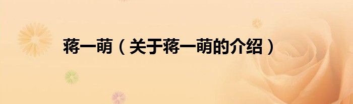 大家好,今天小乐来为大家解答以上的问题。蒋一萌,关于蒋一萌的介绍很多人还不知道,现在让我们一起来看看吧!