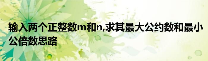 关于输入两个正整数m和n,求其最大公约数和最小公倍数思路这个很多人还不知道,今天菲菲来为大家解答以上的问题,现在让我们一起来看看吧!
