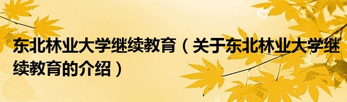 东北林业大学继续教育(关于东北林业大学继续教育的介绍)
