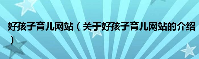 大家好,今天小乐来为大家解答以上的问题。好孩子育儿网站,关于好孩子育儿网站的介绍很多人还不知道,现在让我们一起来看看吧!