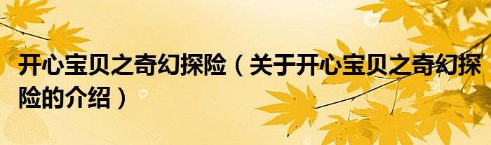 开心宝贝之奇幻探险(关于开心宝贝之奇幻探险的介绍)