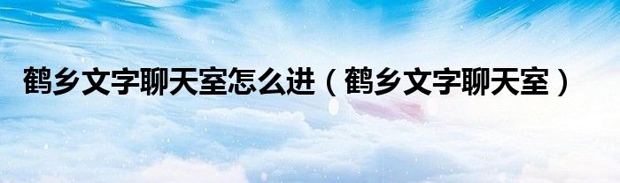 鹤乡文字聊天室怎么进(鹤乡文字聊天室)