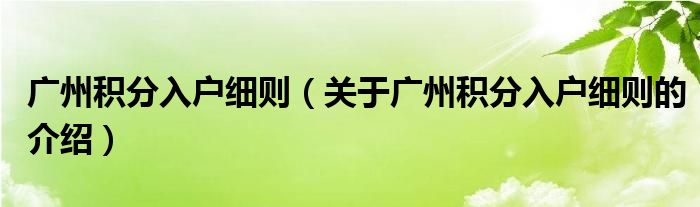 广州积分入户细则(关于广州积分入户细则的介绍)