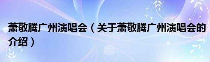 萧敬腾广州演唱会(关于萧敬腾广州演唱会的介绍)