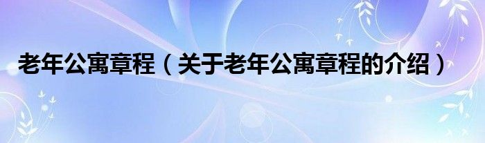 大家好,今天小乐来为大家解答以上的问题。老年公寓章程,关于老年公寓章程的介绍很多人还不知道,现在让我们一起来看看吧!