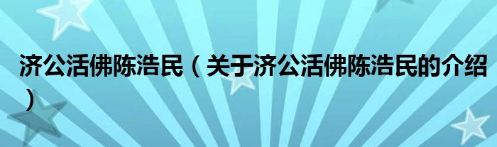 济公活佛陈浩民(关于济公活佛陈浩民的介绍)