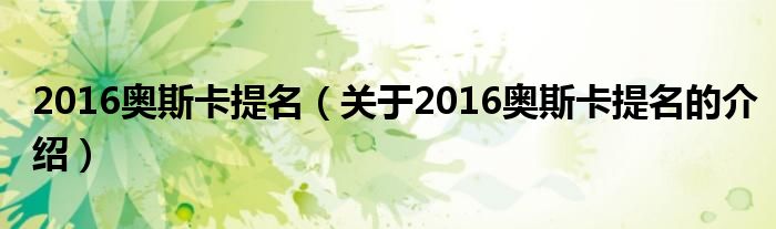 2016奥斯卡提名(关于2016奥斯卡提名的介绍)