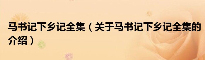 大家好,今天小乐来为大家解答以上的问题。马书记下乡记全集,关于马书记下乡记全集的介绍很多人还不知道,现在让我们一起来看看吧!