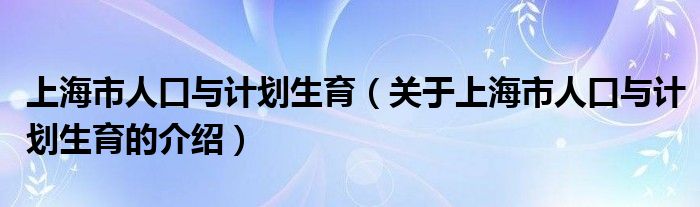大家好,今天小乐来为大家解答以上的问题。上海市人口与计划生育,关于上海市人口与计划生育的介绍很多人还不知道,现在让我们一起来看看吧!