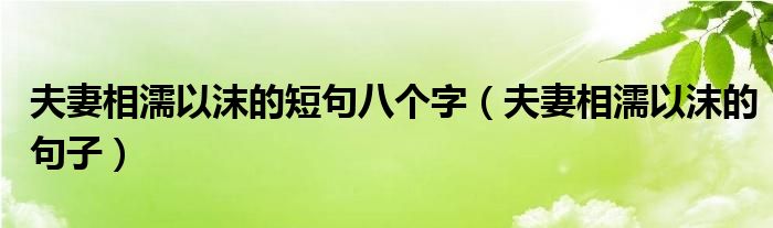 夫妻相濡以沫的短句八个字,夫妻相濡以沫的句子很多人还不知道,乐乐来为大家解答以上问题,现在让我们一起来看看吧!