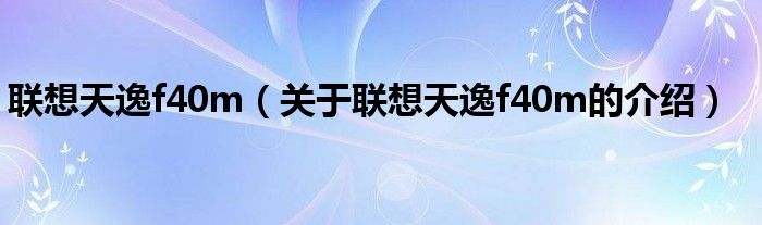 联想天逸f40m(关于联想天逸f40m的介绍)