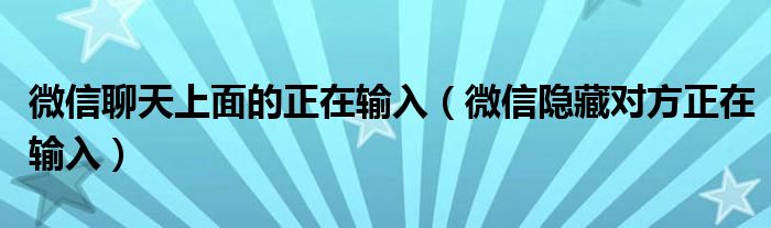大家好,小晋来为大家解答以下问题,关于微信聊天上面的正在输入,微信隐藏对方正在输入很多人还不知道,今天让我们一起来看看吧!