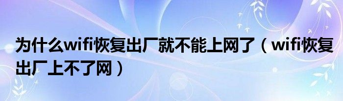 大家好,小晋来为大家解答以下问题,关于为什么wifi恢复出厂就不能上网了,wifi恢复出厂上不了网很多人还不知道,今天让我们一起来看看吧!