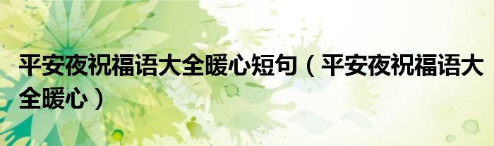 大家好,来宝来为大家解答以下问题,平安夜祝福语大全暖心短句,平安夜祝福语大全暖心很多人还不知道,今天让我们一起来看看吧!