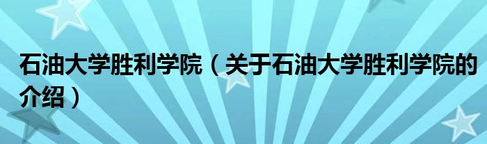 大家好,小都来为大家解答以上的问题。石油大学胜利学院,关于石油大学胜利学院的介绍很多人还不知道,现在让我们一起来看看吧!