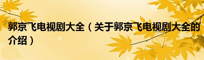 郭京飞电视剧大全(关于郭京飞电视剧大全的介绍)