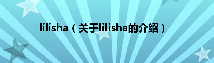 大家好,小都来为大家解答以上的问题。lilisha,关于lilisha的介绍很多人还不知道,现在让我们一起来看看吧!