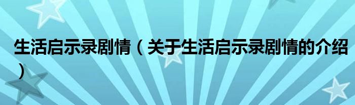 大家好,小都来为大家解答以上的问题。生活启示录剧情,关于生活启示录剧情的介绍很多人还不知道,现在让我们一起来看看吧!