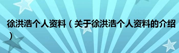 大家好,小都来为大家解答以上的问题。徐洪浩个人资料,关于徐洪浩个人资料的介绍很多人还不知道,现在让我们一起来看看吧!