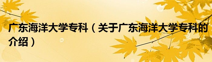 大家好,小都来为大家解答以上的问题。广东海洋大学专科,关于广东海洋大学专科的介绍很多人还不知道,现在让我们一起来看看吧!