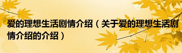 爱的理想生活剧情介绍(关于爱的理想生活剧情介绍的介绍)