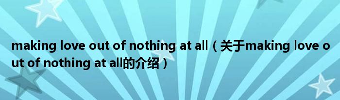 大家好,小都来为大家解答以上的问题。making love out of nothing at all,关于making love out of nothing at all的介绍很多人还不知道,现在让我们一起来看看吧!