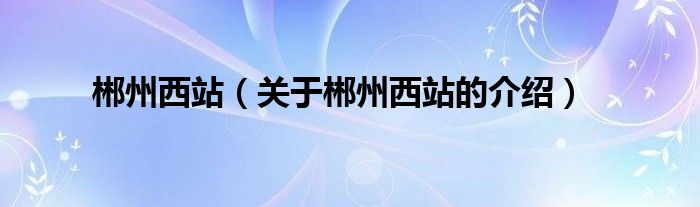 大家好,小都来为大家解答以上的问题。郴州西站,关于郴州西站的介绍很多人还不知道,现在让我们一起来看看吧!