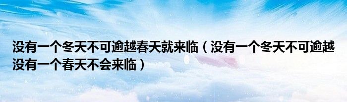 大家好,雨雨来为大家解答以上问题,没有一个冬天不可逾越春天就来临,没有一个冬天不可逾越没有一个春天不会来临很多人还不知道,现在让我们一起来看看吧!