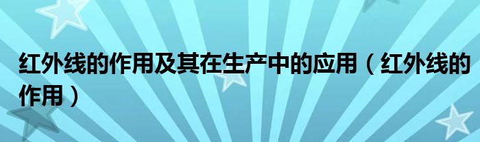 大家好,雨雨来为大家解答以上问题,红外线的作用及其在生产中的应用,红外线的作用很多人还不知道,现在让我们一起来看看吧!